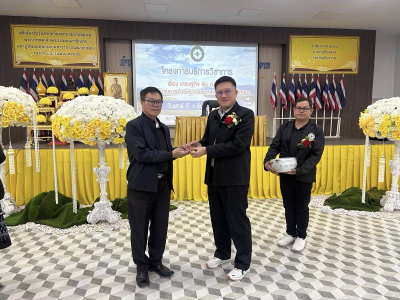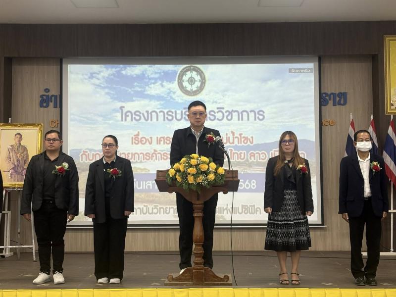 รองศาสตราจารย์ ดร.สุรเจต ไชยพันธ์พงษ์ อธิการบดี สถาบันวิทยาการจัดการแห่งแปซิฟิค เป็นประธานในพิธีเปิดโครงการบริการวิชาการ กฎหมายการค้าระหว่างประเทศไทย ลาว เมียนมาร์ ประจำปีการศึกษา 2568 วันที่ 6 ธันวาคม 2568 ณ หอประชุมดาวเจ็ดแฉก ที่ว่าการอำเภอเชียงของ จังหวัดเชียงราย