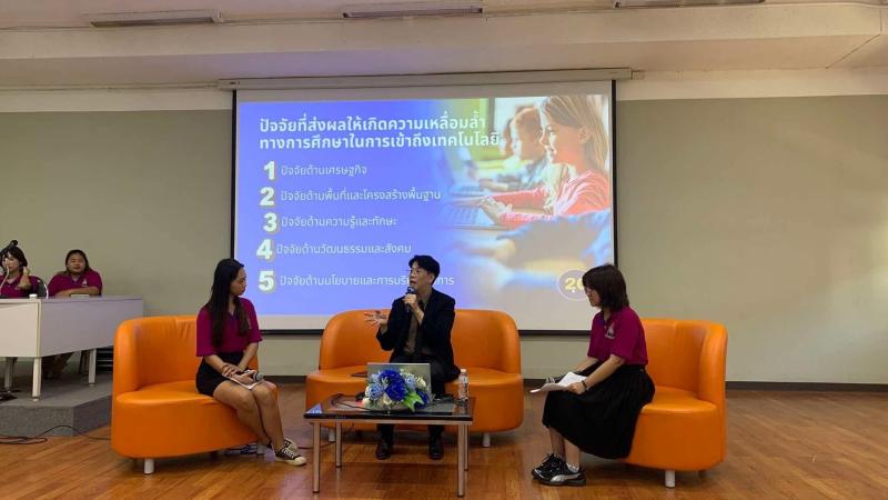 ภาพกิจกรรม : วิทยากรในงานสัมมนาหัวข้อเรื่อง “เทคโนโลยีลดความเหลื่อมล้ำทางการศึกษาจริงหรือไม่”
