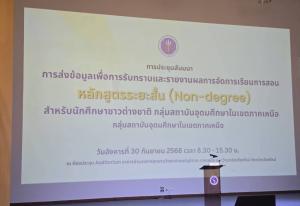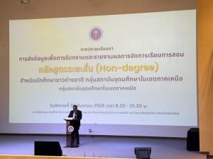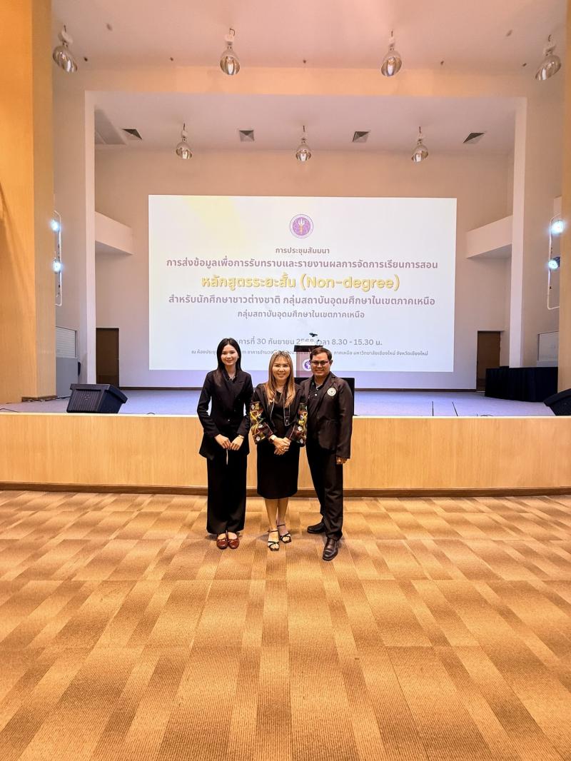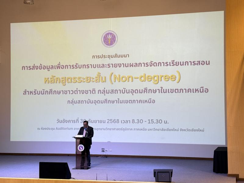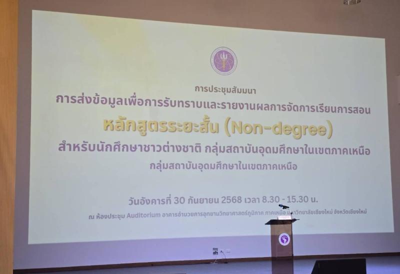 วันที่ 30 กันยายน 2568 รองศาสตราจารย์ ดร.สุรเจต ไชยพันธ์พงษ์ อธิการบดี ได้มอบหมายให้ ผู้ช่วยศาสตราจารย์ ดร.รุ่งฤดี รัตน์ชัยศิลป์ รองอธิการบดี พร้อมด้วย อาจารย์ประตินันท์ กันคำบำรุงทรัพย์ และ อาจารย์กรกนก ทิพพหา เข้าร่วมประชุมสัมมนา หัวข้อ การส่งข้อมูลเพื่อการรับทราบและรายงานผลการจัดการเรียนการสอน หลักสูตรระยะสั้น (Non-degree) สำหรับนักศึกษาชาวต่างชาติ กลุ่มสถาบันอุดมศึกษาในเขตภาคเหนือ ณ ห้องประชุม Auditorium อาคารอำนวยการอุทยานวิทยาศาสตร์ ภูมิภาคภาคเหนือ มหาวิทยาลัยเชียงใหม่ จังหวัดเชียงใหม่ โดยกระทรวงการอุดมศึกษา วิทยาศาสตร์ วิจัยและนวัตกรรม สัญจรภาคเหนือ ในครั้งนี้